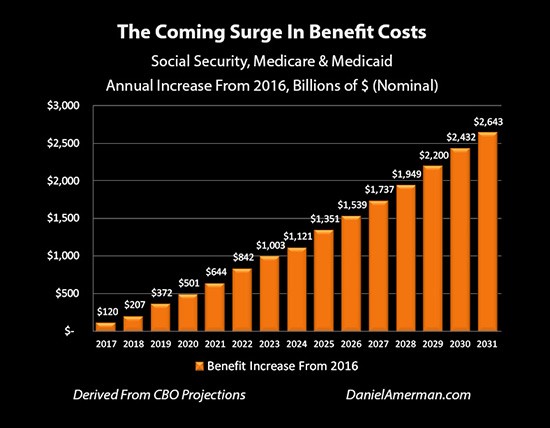 Benefit costs are anticipated to be a trillion dollars a year greater than their current cost by the year 2023. They'll be one and half trillion dollars a year greater by 2026. And if current estimates are accurate, benefit costs will be $2 trillion greater than now - on an annual basis - by 2029.