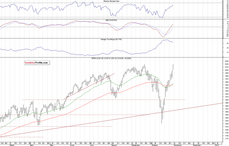 The main U.S. stock market indexes gained between 1.1% and 1.4%, extending their uptrend, as investors reacted to the Bank of Japan stimulus program announcement. The S&P 500 index got very close to the September 19th all-time high of 2,019.26. The nearest important resistance level is at around 2,020, marked by an all-time high. On the other hand, the level of support is at 2,000, among others. There have been no confirmed negative signals so far, however, we can see some short-term overbought conditions: