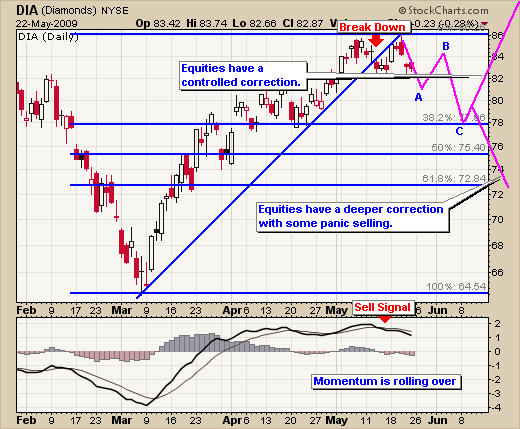 Emotions are very difficult to control, which is why you must have a trading plan complete with entry and exit levels for when investments start to move. It's important to remember that when the market is topping out it's a process not an event. Expect it to roll over slowly and drift lower. There is a point when panic selling will set in, and we will see prices slide several days in a row. That is the time to be tightening our stops taking profits on our short positions.