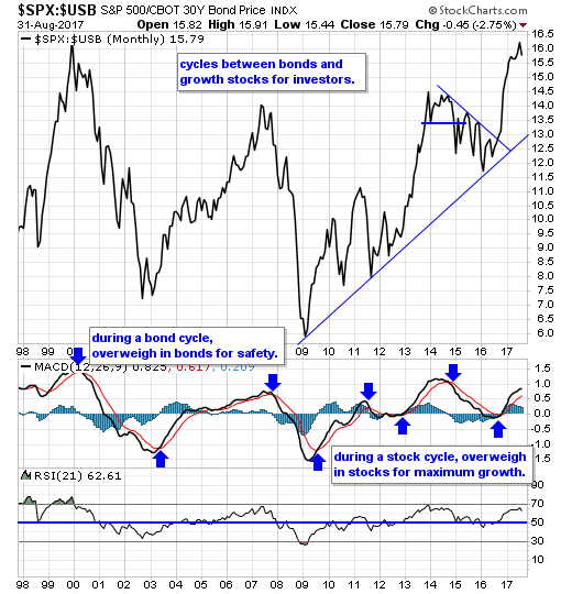 Our equity/bond model - This long term reliable investing model provides investors with simple decision making in the markets: