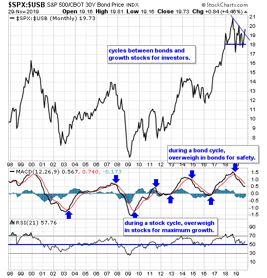 However, the current investing model favors bonds, therefore, investors should continue to overweigh with long bonds or bond ETFs for safety over growth.