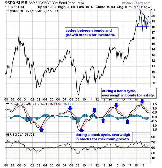However, the current investing model favors bonds, therefore, investors should continue to overweigh with long bonds or bond ETFs for safety over growth.