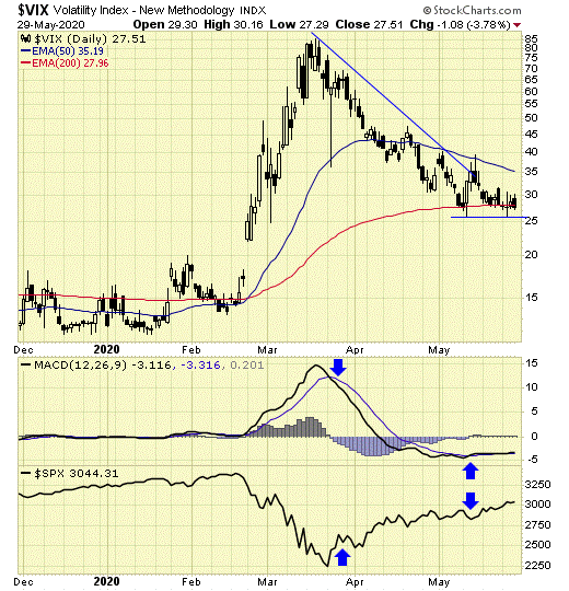 Daily fluctuation on the VIX and the markets can be extreme in current conditions, therefore, monitoring the monthly chart provides us with the big picture and not get caught up and distracted by the wild short term price action.
