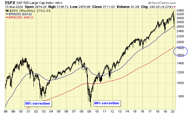 If the current sell off is the start of another major correction, downside target is near the 200ema between 1600 & 1700.