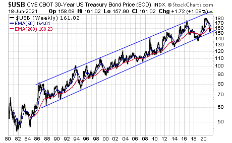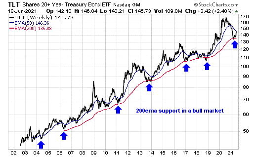 In fact, the weekly 200ema has been providing support for 20 years, and we are now at support again.