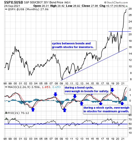 Our equity/bond model - This long term reliable investing model provides investors with simple decision making in the markets: