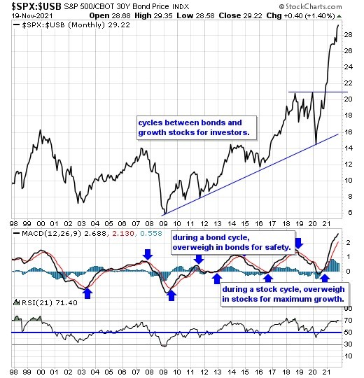 Our equity/bond model - This long term reliable investing model provides investors with simple decision making in the markets: