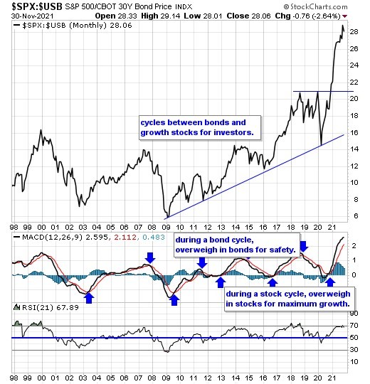Our equity/bond model - This long term reliable investing model provides investors with simple decision making in the markets: