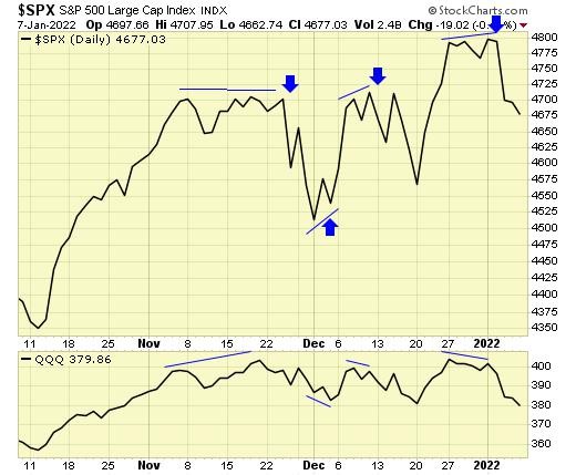 Divergences often occur at market tops and bottoms as we have observed for the past twenty years.