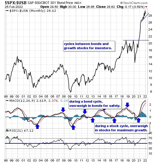 Our equity/bond model - This long term reliable investing model provides investors with simple decision making in the markets: