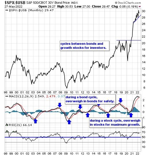 Our equity/bond model - This long term reliable investing model provides investors with simple decision making in the markets: