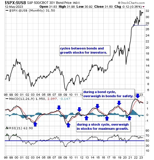 Our equity/bond model - This long term reliable investing model provides investors with simple decision making in the markets: