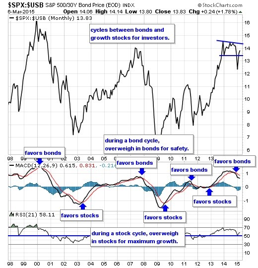 Our equity/bond model - This long term reliable investing model provides investors with simple decision making in the markets: