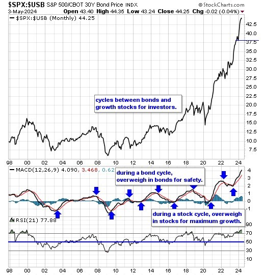 Our equity/bond model - This long term reliable investing model provides investors with simple decision making in the markets: