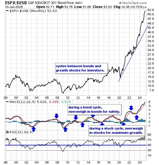 Our equity/bond model - This long term reliable investing model provides investors with simple decision making in the markets: