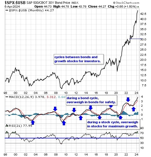 Our equity/bond model - This long term reliable investing model provides investors with simple decision making in the markets: