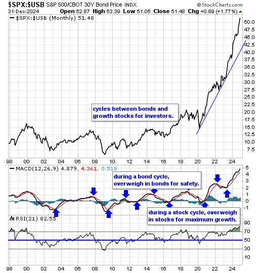 Our equity/bond model - This long term reliable investing model provides investors with simple decision making in the markets: