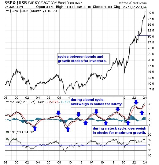 Our equity/bond model - This long term reliable investing model provides investors with simple decision making in the markets: