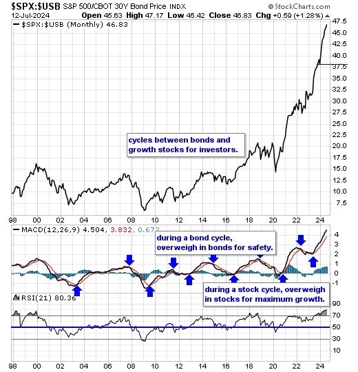 Our equity/bond model - This long term reliable investing model provides investors with simple decision making in the markets: