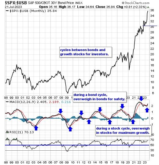 Our equity/bond model - This long term reliable investing model provides investors with simple decision making in the markets:
