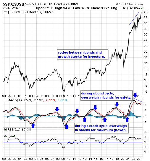 Our equity/bond model - This long term reliable investing model provides investors with simple decision making in the markets: