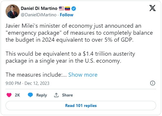 A cynic might suspect these media outlets simply don’t wish to report good news out of Argentina, now that Milei is president.