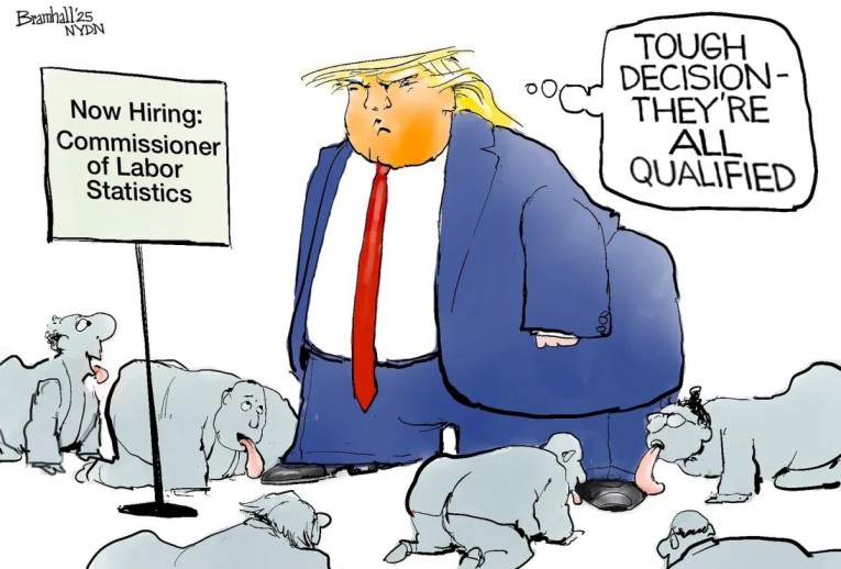While Erika McEntarfer, the director of the Bureau of Labor Statistics, did a fine job for Trump in reporting good numbers during May and June (which I found highly suspicious so paid little attention to them), she apparently was not able to find enough rose-colored ink to stretch the truth any further in her latest report. So, her downfall was in reporting a decline in the headline number as well as in those back numbers.