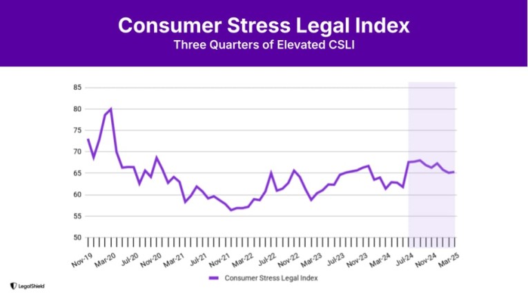 The spike in bankruptcy inquiries isn’t surprising given that LegalShield’s Consumer Stress Legal Index recorded its third straight quarter of high financial strain.