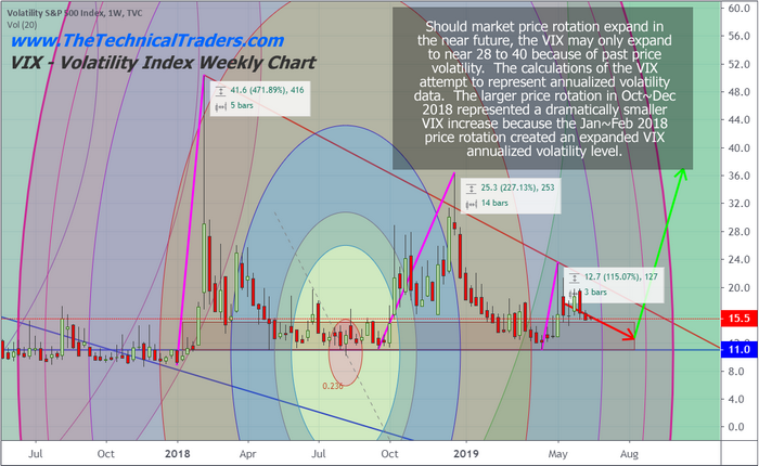 We currently believe a large price rotation may be set up for near the end of 2019. Our proprietary cycle modeling systems and extended research are suggesting this downside move may begin sometime near August or September of 2019. Remember, this new VIX research suggests that any large price downswing may result in a very moderate VIX price increase at first. In other words, things could get very interesting towards the end of 2019 for traders.