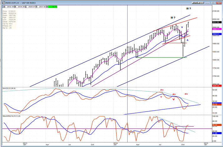 Our first chart will again be that of the weekly SPX (chart courtesy of QCharts, including others below) with the McClellan Summation Index posted underneath it.