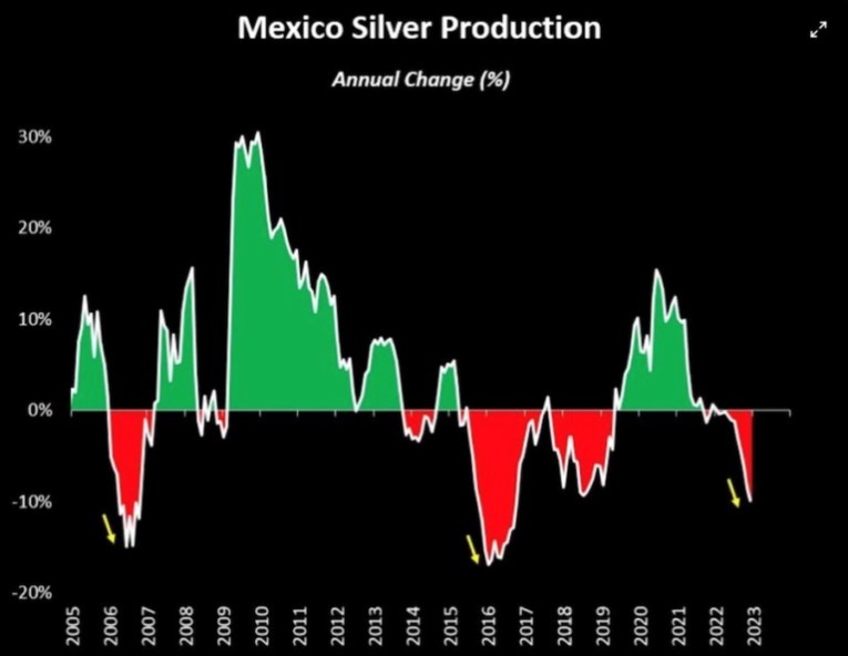 While Mexican production has nose-dived in the past, it’s never been in conjunction with China demand this large, Silver Academy notes: