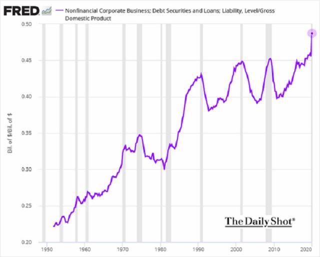 Money printing, debt accumulation and asset bubbles have become the fragile foundation for which this current economy is built. Therefore, the notion that the Fed can end its $120 billion per month QE program and gradually raise interest rates back anywhere close to the normal level of 5-6% is ridiculous. Indeed, it would be shocking if it could get rates close to the previous high of 2.5%–the new lower high on the FFR is probably below one percent given the massive increase in the number of insolvent companies and unsustainable level of equity valuations.