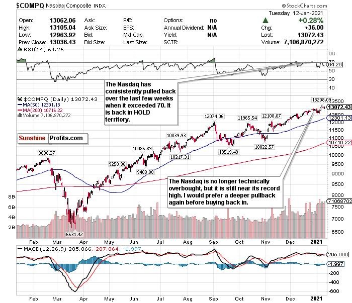 I initially changed my short-term call on the Nasdaq from a SELL to a HOLD on January 5. I liked the Nasdaq’s declines to start 2021, especially after overheating. The RSI was no longer overbought as well.