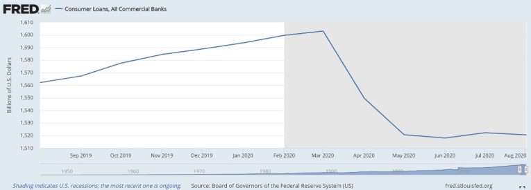 While busily funding struggling businesses, the banks were cutting loans to consumers. While the scale of it is different, the reduction in consumer loans makes it harder for businesses, particularly retailers, to survive.