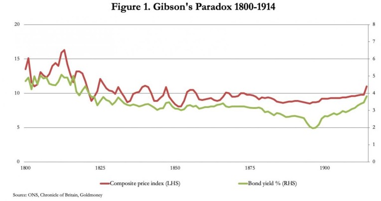 Demand for credit is set by the economic calculations of businessmen and entrepreneurs, not idle rentiers as assumed by Keynes who named this paradox after Arthur Gibson, who pointed it out in 1923. The explanation eluded Keynes and his followers but is simple. In assessing the profitability of production, the most important variable (assuming that the means of production are readily available) is anticipated prices for finished products. Changes in borrowing rates, reflecting the affordability of interest that could be paid therefore do not precede changes in prices but follow changes in prices for this reason.[ii]