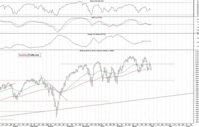 The U.S. stock market indexes lost 0.4-0.5% on Wednesday, retracing their Monday's move up, as investors reacted to worse-than-expected economic data announcements. The S&P 500 index remains close to support level of 2,040-2,050, marked by previous local lows. On the other hand, level of resistance is at around 2,080-2,090. For now, it looks like some further fluctuations within a medium-term consolidation following October-November rally: