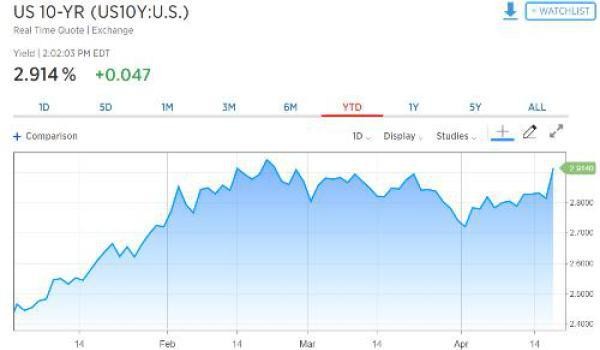 Meanwhile, both houses and gas feed the Fed’s desire to “normalize” interest rates at considerably higher levels, a process already well under way. Here’s the 10-year Treasury yield so far in 2018. Note the spike in just the past couple of days.