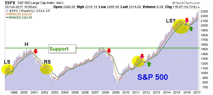There is a plan in play, which NFTRH has been tracking for many months, since we abandoned the bearish topping patterns (that weren’t) in US markets during the depths of the Brexit hysteria and the subsequent sentiment thrust, which undid the market’s bearish technical status. The plan has been ‘SPX bullish’ based on the bullish moving average (up) signal on this weekly chart from the better part of a year ago…