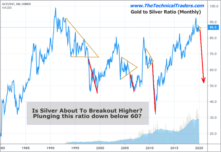 We believe the current setup in gold and silver is almost identical to previous setups where gold rallied on economic or global concerns, prompting a massive disparity ratio between gold and silver. We believe silver is setting up in a massive basing pattern that may be an incredible opportunity for skilled traders.