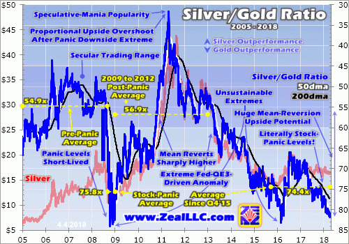 Unbelievably silver in 2018 is even more extremely undervalued than during those 4 months surrounding that stock panic! Again the SGR is averaging just 79.6x year-to-date. That’s considerably worse than during the stock panic which saw 75.8x over a similar time span. Such incredibly-low silver prices are no more sustainable now than they were then. That’s why a major new silver bull is likely coming very soon.