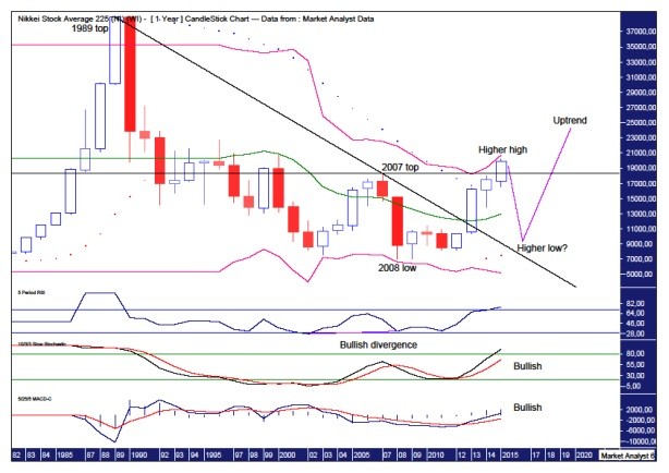 Of all the indexes I cover, there is no other stock market that I am more bearish about than the Japanese index, the Nikkei. But let’s be under no illusions. The massive secular bear market that has been in force since the 1989 top is done and dusted.