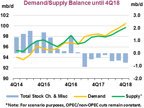 Supply may have increased, but so has demand. Demand is growing all the time and it exceeds supply, as this chart from the International Energy Agency (IEA) shows.