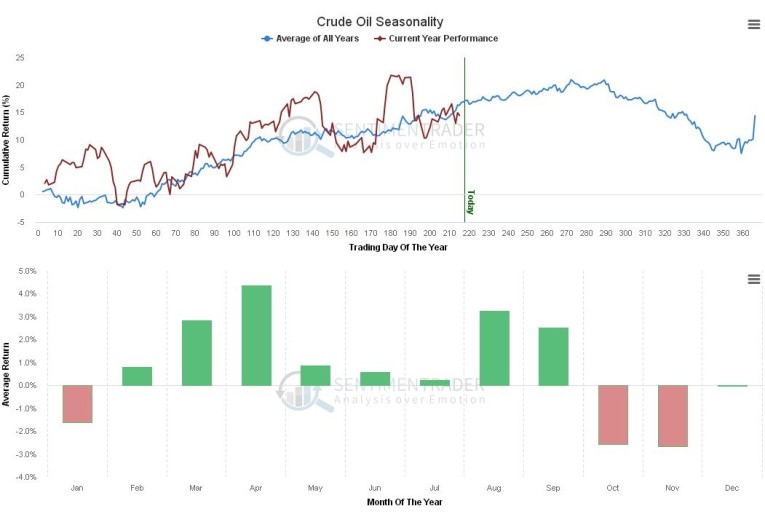 Finally, seasonal factors for oil are at their 2nd most positive of the year during August, which by itself makes a near-term rally more likely…