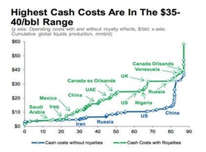 True, oil would have to fall even further if it’s going to rebalance the oil market by bankrupting the world’s most marginal producers. But that’s what’s bound to happen if the oversupply continues. And because North American shale producers have relatively high cash costs (in the $30 range), the Saudis could very well succeed in making a big portion of US and Canadian oil production disappear, if they are determined to.