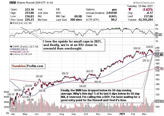 I kicked myself for not calling BUY on the Russell after seeing a minor downturn during the second half of February. I also realized I may have broken my own rule about “not timing the market.” I’ve wanted to buy the Russell 2000 forever but never thought it dipped hard enough (whenever it did). I was waiting for it to at least approach a correction.