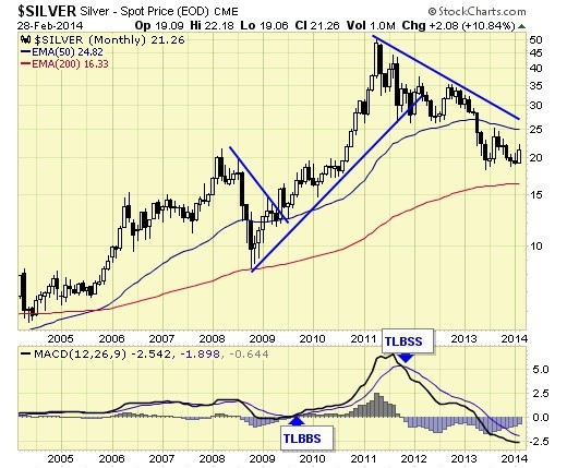 Silver remains on major sell signal, however, prices are near 200ema support and a major buy signal can materialize in the months ahead.