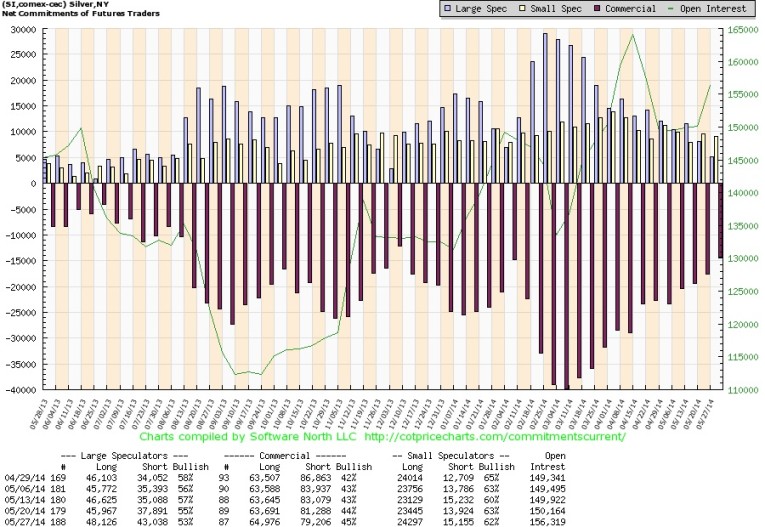Speculation on silver is now approaching levels of previous bottoms, but OI needs to confirm.