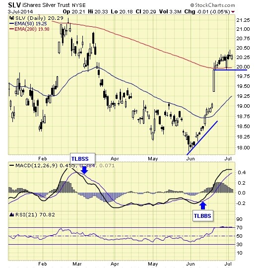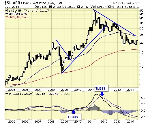 Silver remains on major sell signal, however, prices are near 200ema support and a major buy signal can materialize in the months ahead.