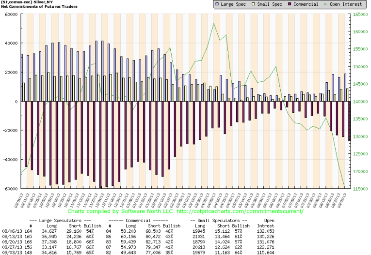 Silver is giving mixed signals depending on time frame. However, speculative Open Interest is rising, which suggests higher prices overall.