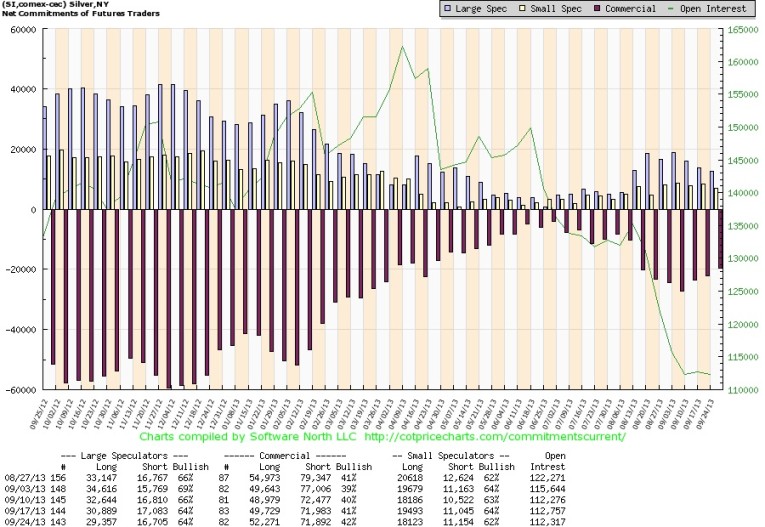 In all periods silver is giving sell signals. Moreover, speculators continue to pullback.